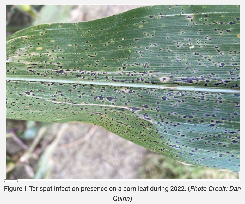 The disease is characterized by raised black, tarlike spots (fungal structures called stromata) that are scattered across leaves and later may be observed on husks. This infection reduces photosynthesis of susceptible corn hybrids, killing plants and causing yield loss from 20 to 60 bushels per acre.